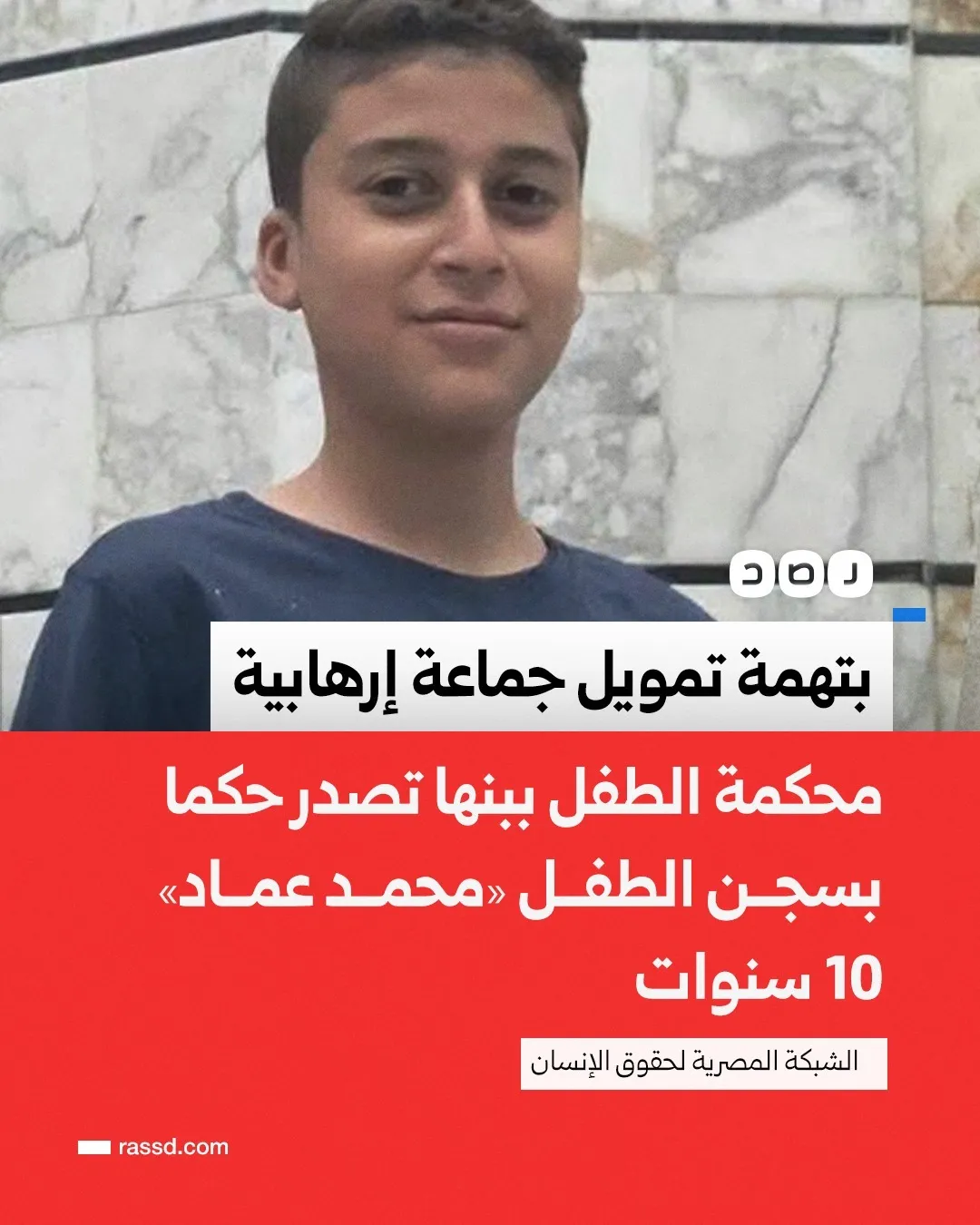 قضت محكمة الطفل بمدينة بنها بالسجن المشدد لمدة 10 سنوات بحق الطفل محمد عماد محمد علي إبراهيم (16 عامًا)، في القضية رقم 4240 لسنة 2024 حصر أمن دولة عليا، على خلفية اتهامه بقيادة وتمويل جماعة إرهابية، وذلك بعد محاكمة استمرت نحو 35 يومًا.