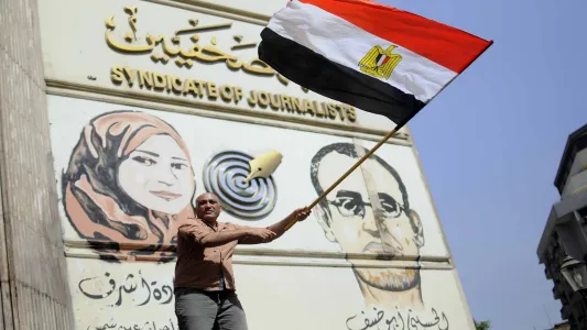 يشار إلى أن نقابة الصحافيين المصريين، تزينت بعلم فلسطين على مدخل مبناها بوسط القاهرة، معلنة تضامنها الكامل مع القضية الفلسطينية، بالتزامن مع العدوان الإسرائيلي المستمر على قطاع غزة الذي استهدف المدنيين والأطفال والنساء.